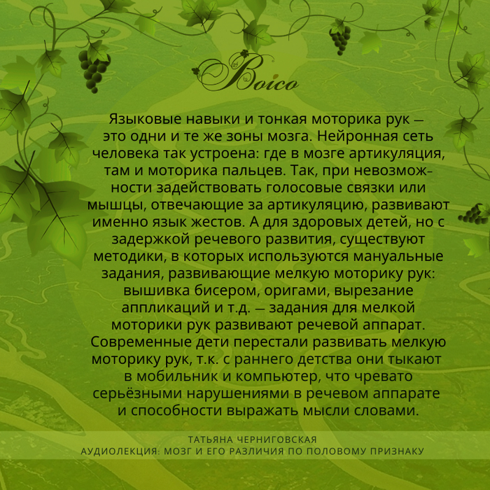 Черниговская в одной из лекций указывала на важность моторики пальцев рук:
