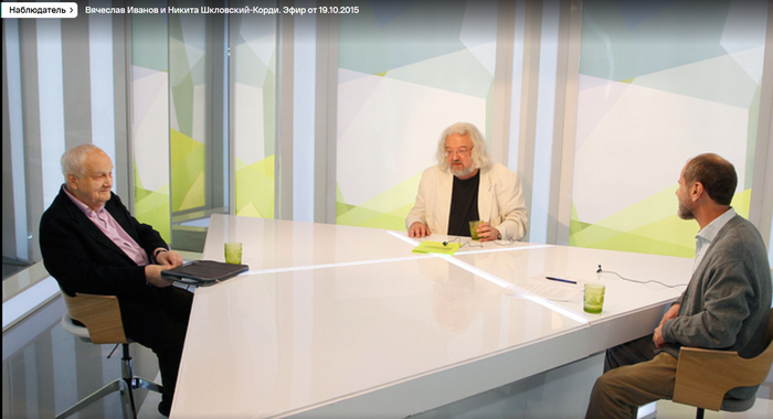 (В других странах есть мои коллеги, с которыми я делюсь своими изысканиями и впечатлениями о нынешней ситуации в сфере ноосферы, коллеги, которые уехали из России из-за намеренного снижения языковой культуры, уничтожения интеллектуальных передач сейчас в интернете и в поле СМИ. Они обожают русскую культуру, только именно подлинную русскую культуру. Вот ту самую русскую культуру, о которой говорится в данной передаче с моим учителем Вячеславом Всеволодовичем Ивановым и с Никитой Ефимовичем Шкловским-Корди).