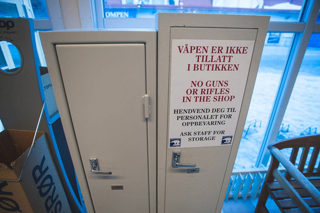 Вообще, местные не боятся таких необычных соседей и даже привыкли к ним, но по правилам безопасности каждый житель обязан носить с собой крупнокалиберное оружие и/или сигнальный пистолет. Для приобретения оружия всего лишь нужна справка об отсутствии судимости, переведенная на английский или норвежский и заверенная губернатором.