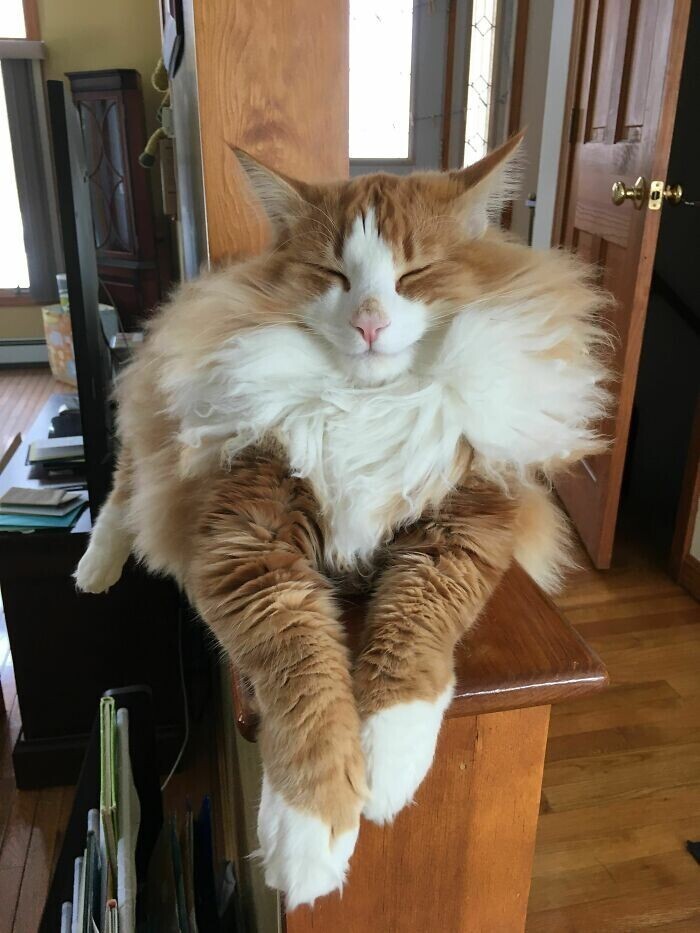 В хозяйстве имеется сладкий пирожочек (собссно на фоточке). 10 кг веса, норвежский лесной кот. Отличный аппетит, при этом любит разнообразие, чтобы сухари непременно чередовались. Уважает говядину, рыбью печень, и т.д. Но основная боль, что когда-то ему дали попробовать пакетики Perfect fit. Приторчался с первого раза. Видит пакетик и теряет достоинство. Если не видит, то может часами канючить.