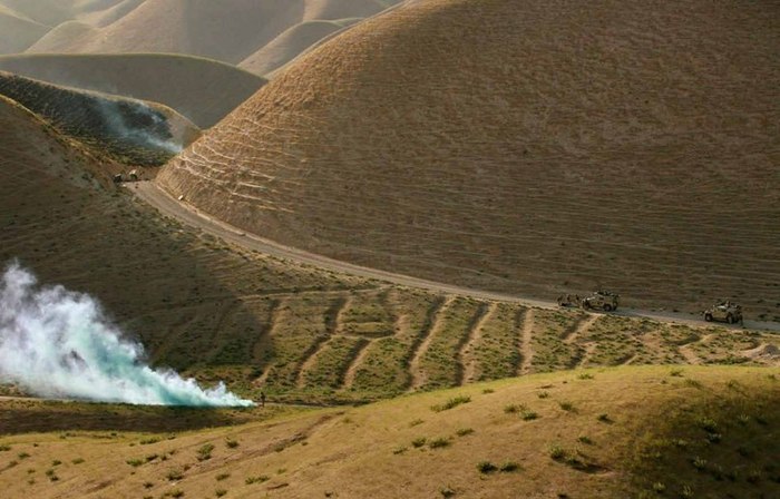 2 мая 2010 года. Кто-то прятался на крышах домов. Другие скрывались среди деревьев. Приблизительно 70 талибов, вооруженных автоматами Калашникова и гранатометами. Все их внимание сосредоточено на сухом русле реки в Tutakdalen. Они ждут.