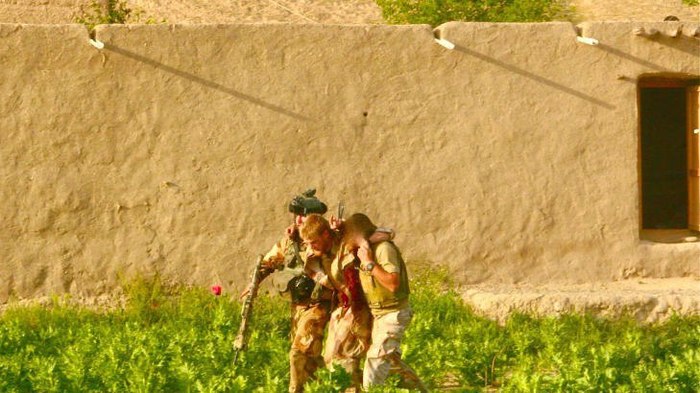 Некоторые из солдат застыли в шоке. Другие начали уносить мешки с телами вниз по пыльной дороге. Так как стало очевидно, что никаких атак талибов не будет, то Томми сфотографировал место происшествия. Потом камера переходила от человека к человеку. Никто не сказал ни слова.