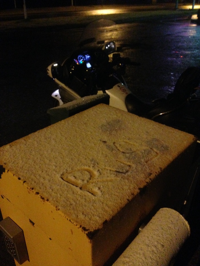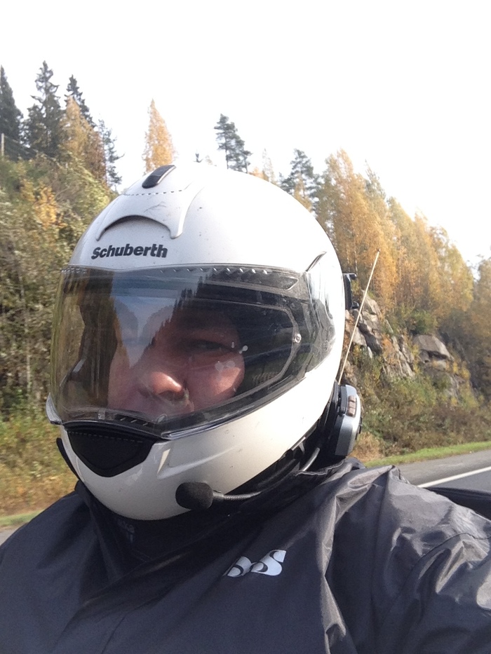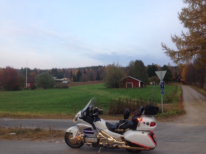 При выезде была почти летняя температура около 5 градусов. Но доехав до Бологого я увидел на термометре -1, немало удивился. Все только начиналось. Я тогда и не предполагал, что устойчивый плюс увижу лишь через неделю. Погрелся на ближайшей АЗС, да и поехал дальше. Постепенно стало теплее, около +3. Дорога стелется, музыка играет. Сверху иногда сыпется снег, но мот идет уверенно и без скоростных рекордов — около сотни. Дальше Питер, граница в Выборге, едем.