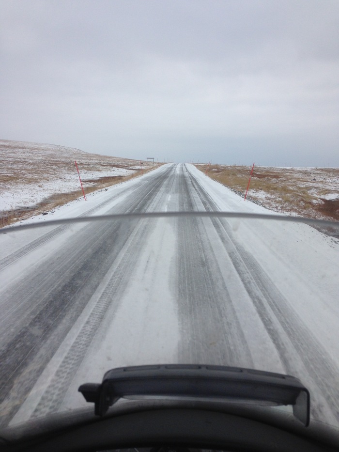 Сразу после поворота под знак «Nordkapp» дорога пошла вверх, через 300 метров начался снег со льдом, перемежающийся чистыми участками по неподдающемуся осознанию алгоритму.