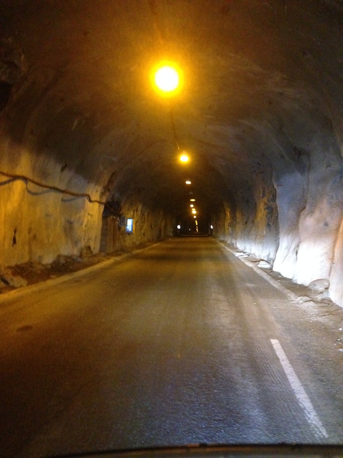 Начинаются тоннели, перемежающиеся пологими серпантинами вдоль моря-окияна. В тоннелях греюсь, там плюсовая температура, мокро, но нет опостылевшего снега. Километрах в 80 от финиша при выезде из одного очень глубокого прохода в горе обнаруживаю, что дорога начинает улучшаться, уже нет толстого наста с колеей, колеса цепляют асфальт, а повороты проходятся не пешком, а вполне уверенно без намека на снос. Одним словом — Ташкент!