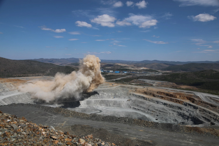 Добыча руды на Быстринском ГОКе проходит открытым способом с применением буро-взрывных работ.