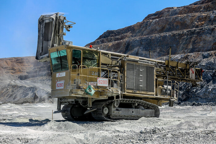Одна из буровых установок, работающая в карьере. Промышленная добыча здесь началась с 2014 года, а обогатительную фабрику начали строить в 2015 году.