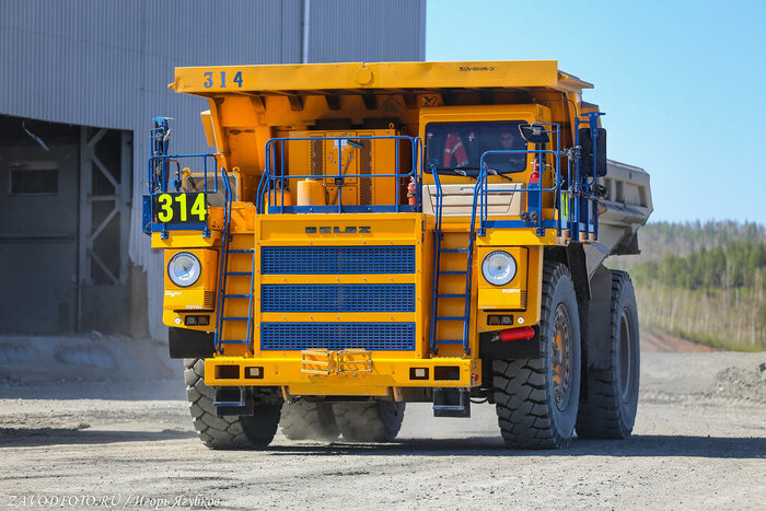 Ковшик у этого немецкого красавца вмещает целых 22 кубометра, поэтому погрузка проходит довольно быстро.