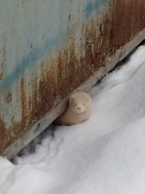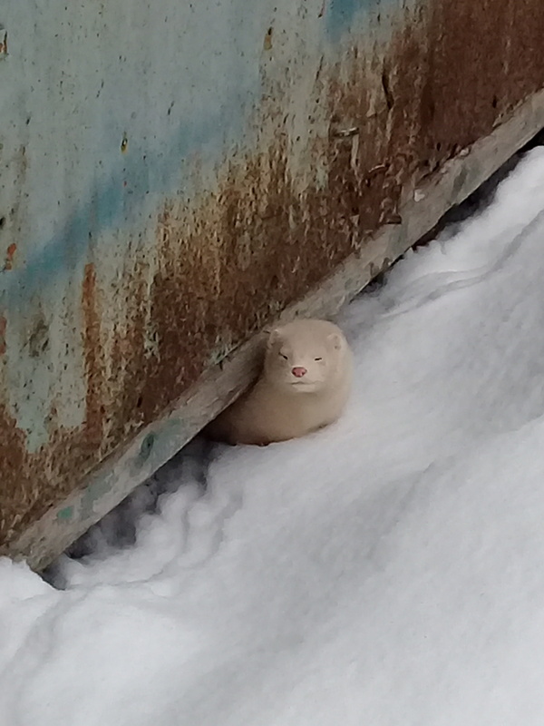 Продолжение к предыдущему посту.С утра снова встретила этого зверька, куриную грудку она с удовольствием утащила к себе в гараж.По последним данным, она давно обитает в этом месте,уничтожает крыс.