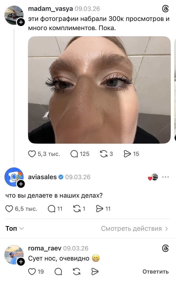 10 Kittsunia Юмор Что вы делаете в наших делах? 11 дней назад Оригинал Показать полностью 1 Юмор Комментарии Threads Скриншот Aviasales Игра слов Нос 3 3 2 Ещё 0
