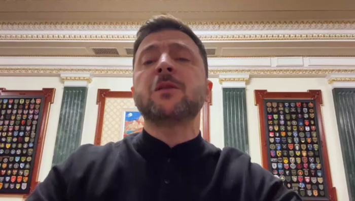 Владимира Зеленского во время видеообращения к украинцам вылетела неизвестная субстанция белого цвета.