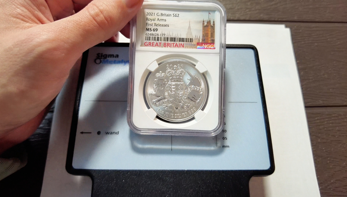 Теперь про прибор Sigma Metallitics. Да, он стоит около 150 тысяч рублей. Да, это дорого. Но для меня это реально полезная вещь, потому что я не супер-эксперт, чтобы на глаз отличать подделки. А этот прибор определяет состав металла даже через пластиковую капсулу слаба. Очень удобно для проверки уже упакованных монет.