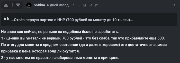 Что касается самого слабирования - я понимаю, что не всем это нравится. Многие коллекционеры предпочитают хранить монеты в альбомах, трогать их руками. Но лично мне нравится, когда монета защищена. Можно не бояться её уронить или случайно поцарапать. Плюс это даёт понимание реальной рыночной стоимости.