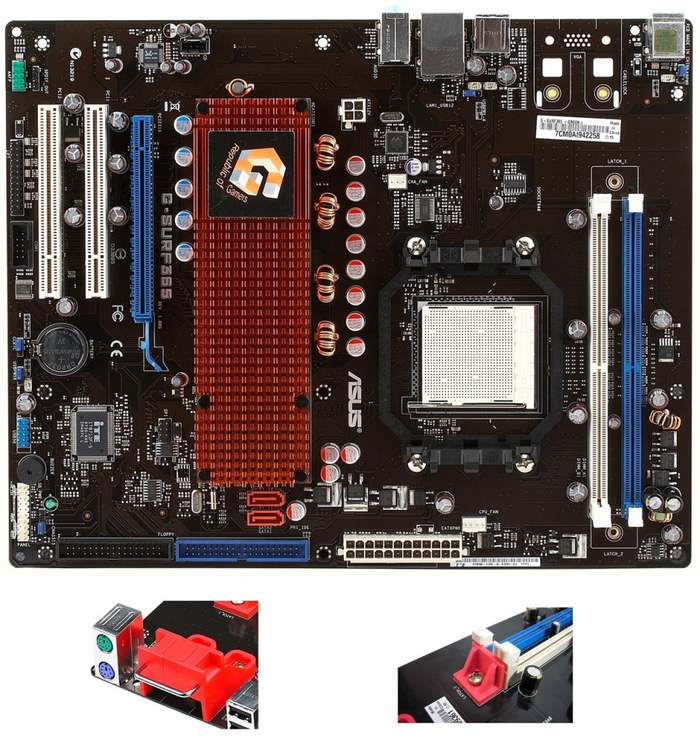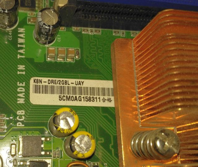 Так что хорошо, что все на месте, хоть и мало пригодное к работе. Под толстым слоем пыли стала проглядывать надпись: K8N-DRE.