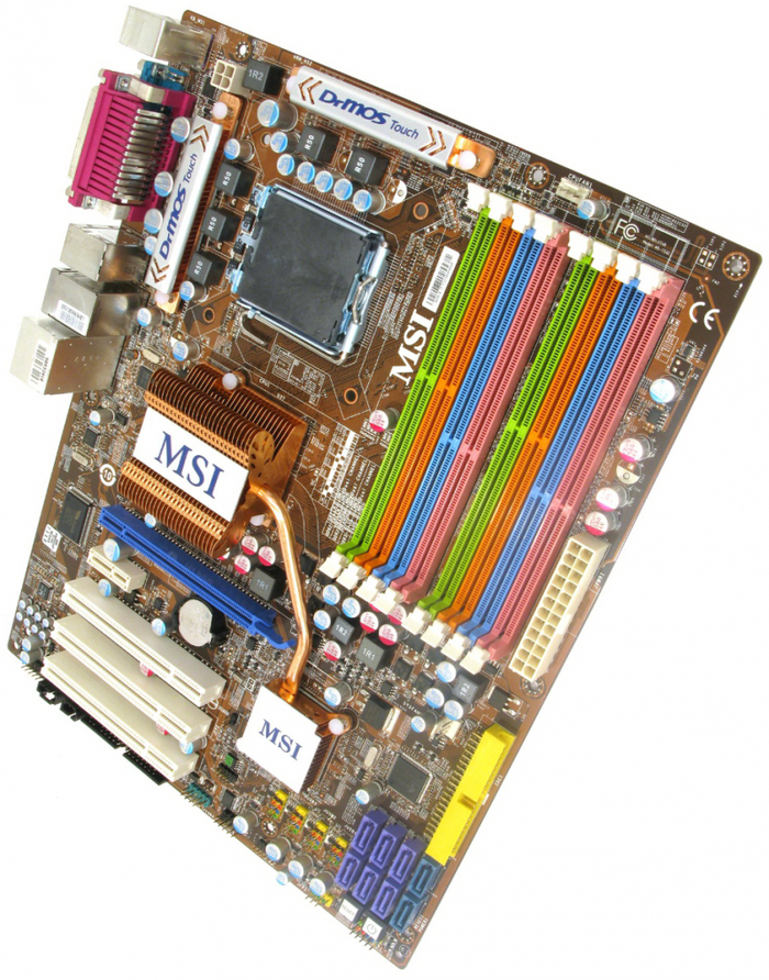 8 слотов для памяти говорят о том, что для достаточном для комфортной работы количестве оперативки можно использовать модули всего по 512Мб или 1Гб.