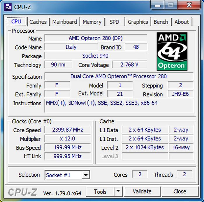 Процессор: 2 х AMD Opteron 280 2.4ГГц