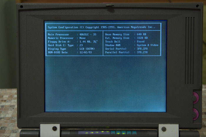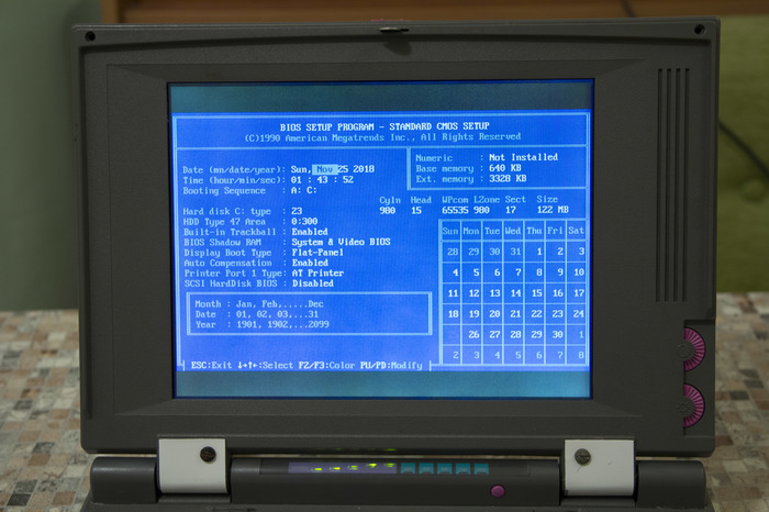 Остановимся на SCSI, оно же Скази. Часто вы видите скази на ноутбуках? Вот и я не часто, точнее до этого раза вообще никогда. Традиционно внешний скази в офисе использовали для того чему нужно много скорости, преимущественно для сканеров. Но тут всё по-взрослому, к этому ноутбуку можно подключить жёсткий диск, у него для этого собственный биос имеется.