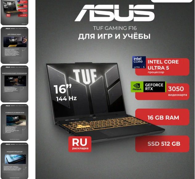 Плюсы: 16" экран с соотношением 16:10 удобен для работы. Проверенная линейка TUF с надёжным охлаждением. RTX 3050 - уверенный "игровой минимум" на пару лет.
