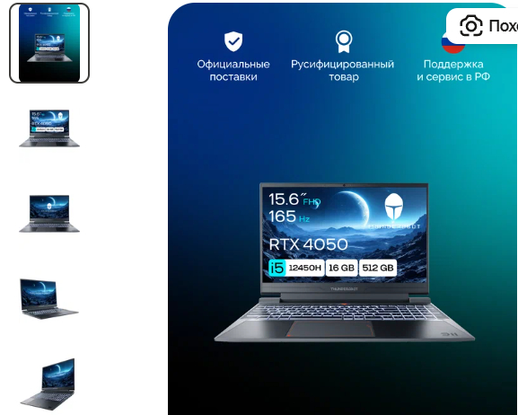 Начинка: i5-12450H, RTX 4060, 32 ГБ ОЗУ, 1 ТБ SSD, 15.6" Full HD 165 Гц.