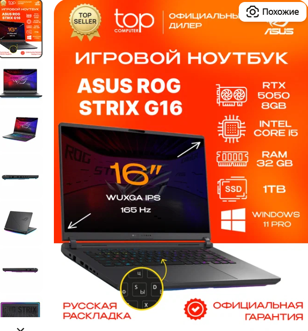 Плюсы: RTX 4060 + 32 ГБ ОЗУ - мощь с запасом. 165 Гц экран, Windows 11 уже установлена.