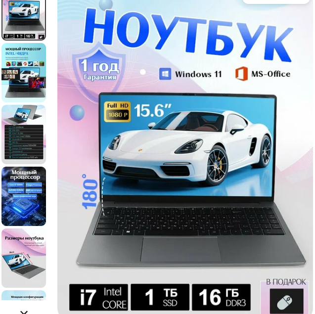 Начинка: Core i7, 16 ГБ ОЗУ, 1 ТБ SSD, Windows 11. (Конкретный GPU обычно встроенный или начального уровня).