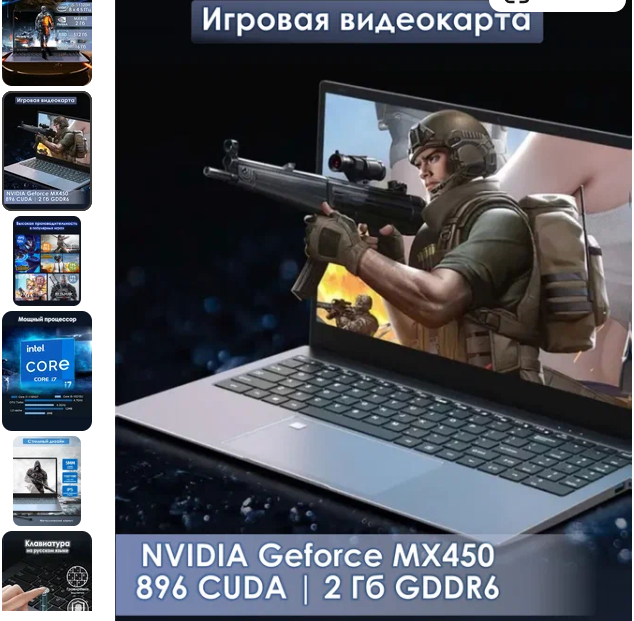 Начинка: Процессор Intel, Дискретная видеокарта, 15.6" экран. (Точные спецификации варьируются, модель более бюджетная).