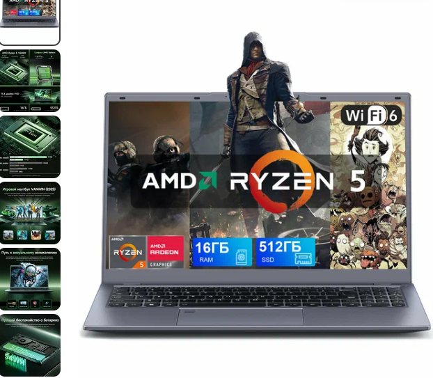 Начинка: Ryzen 5 5500U, Встроенная графика Radeon, 16 ГБ ОЗУ, 512 ГБ SSD.