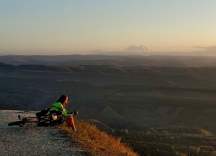 Итак, Кисловодск. Для Стаса — открытие, для меня — знакомые тропы. «Закат на Малом Седле — это святое!» — заявила я с уверенностью гида-первооткрывателя. Мы бегом пробежались по парку, я показывала красоты так, будто сдавала экзамен, и вот мы на вершине. Солнце — огненный шар, небо — акварель, но законы физики — вещь неумолимая. С первым же дуновением вечерней прохлады наш величественный Эльбрус начал таять. Не просто прятаться в дымке. Он испарялся, растворялся, как мираж. Осталось лишь бледное пятно на фоне розовеющего неба. Ощущение было странное — как будто саму идею величия у нас украли. Вокруг топтались туристы, приехавшие на машинах, их смех и щелчки затворов звучали как насмешка над нашей пешей эпопеей.