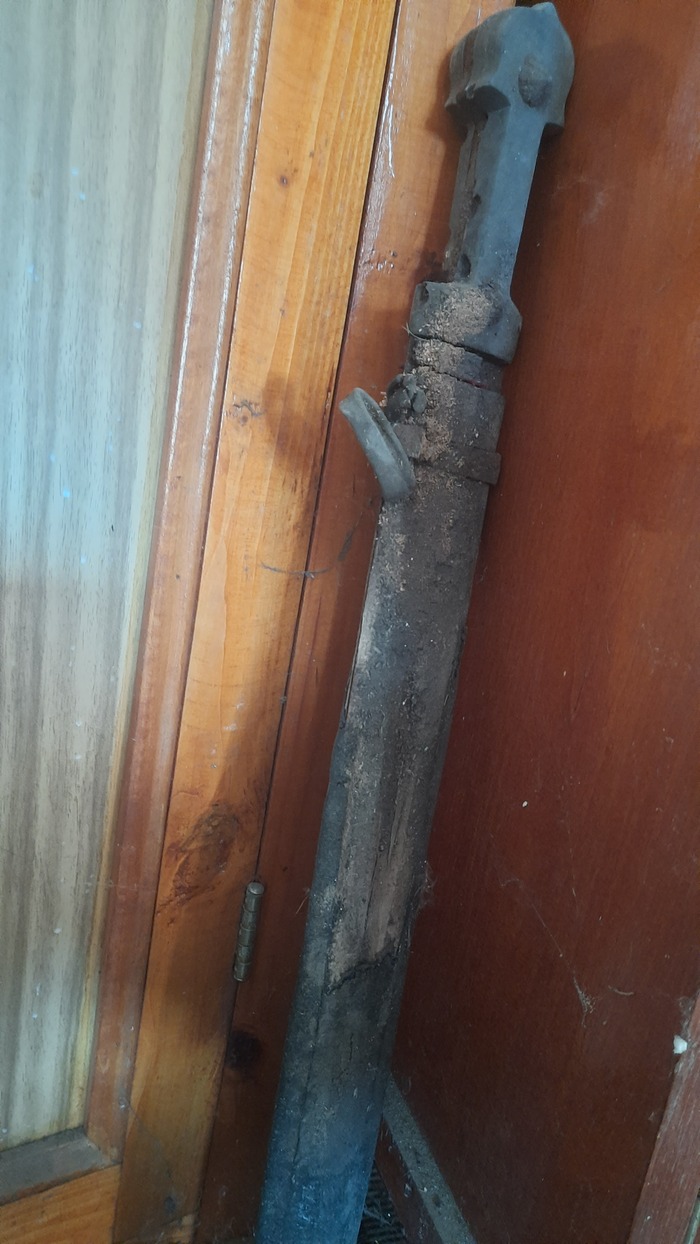 Уважаемые пикабушники, нужно экспертное мнение! При реставрации дома нашли старый деревянный меч, который был закинут под карниз. Дом во владении у нас уже лет 30, плюс знаю, что до нас здесь жила монашка ( вряд ли она рубилась игрушечным мечом). Наверное, ему где-то от 50 лет и старше. Выбросить - жалко.