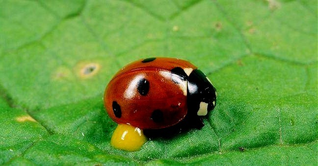 Приступим к раскрытию темы почему “коровка”, и почему именно “божья”. "Коровка" - потому что выделяет из желез на ногах ядовитую, пахучую жидкость, отпугивающую пауков и лягушек. Которая по цвету напоминает молоко. Птицы божьих коровок НЕ едят, поскольку их отпугивает ярко красный цвет панциря.
