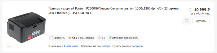 Как будто бегать по сервисам резона нет - но в жёлтом и красном магазинах техники с подобными "недорогими печатными машинками" беда. В сегменте до 12к правит сомнительная контора Pantum, про которую первый пост на отзовике - про то, что постоянно умирают чипы, даже когда тонер в картридже не кончился. Явно такой себе вариант.