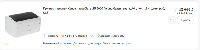 Хотя как будто есть приемлемый Canon, резкого негатива в его сторону нет, да и картриджи на маркетплейсах вроде легко ищутся...
