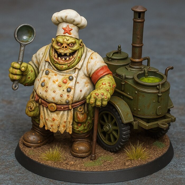 Как то прилетел индивидуальный заказ на Нурглика. Больше конечно напоминает курочку во имя дедушки Нургла. Здесь важно было использовать нежный поросячий цвет, гнойно жёлтый и рано гнило красный.