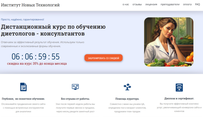 Онлайн-курс профессиональной переподготовки, который отличается доступной стоимостью и возможностью выбора тарифа обучения. Вы сможете освоить как базовые особенности работы диетолога-нутрициолога, так и углубиться в вопросы составления спортивного питания, расшифровки анализов, детской диетологии. Студенты получат дополнительно материалы, которые помогут понять, как диетологу зарабатывать. Обучение на платформе доступно сразу после оплаты и не имеет ограничений по времени. В случае возникновения любых вопросов, вам поможет куратор.