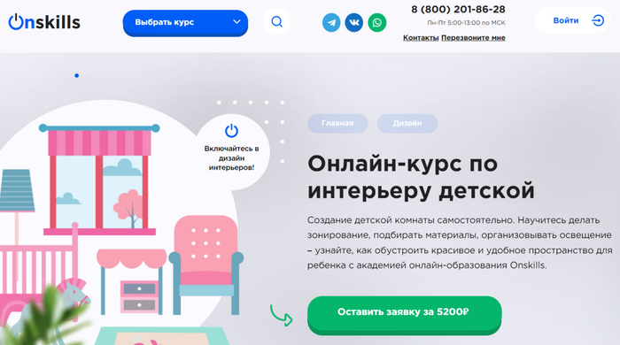 Онлайн-курс по интерьеру детской от Onskills.ru — лучшее обучение дизайну интерьера.