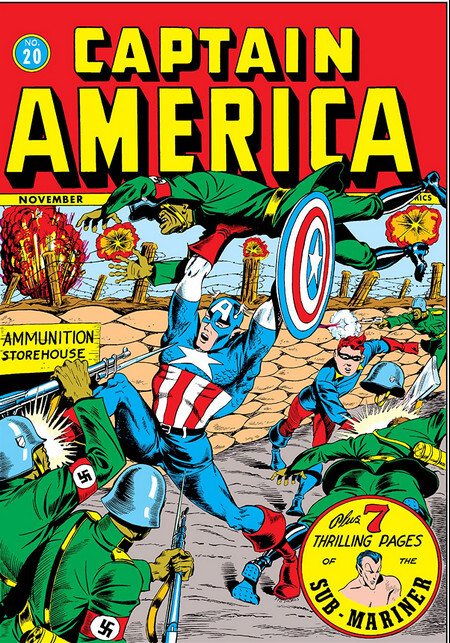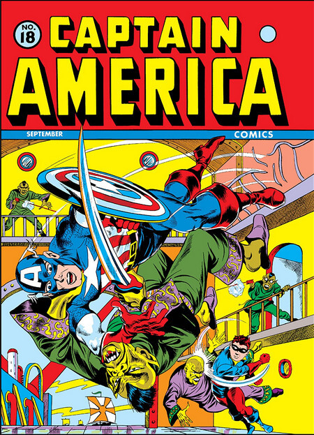 Звёздно-полосатый привет всем, кто это читает! Вы ждали этот день, а может, наткнулись на пост случайно – в любом случае, пора погрузиться в комиксы про Капитана Америку – старые, бредовые, но ламповые. Напомню, в прошлой подборке дебютировал сам Кэп, а также его малолетний спутник Бакки Барнс и зловещий Красный Череп. Ах да, напомню ещё разок: в этот период комиксы про Кэпа очень упитанные, историй в них много, так что те, что поинтереснее, буду чуть более подробно приводить, проходные – в общих чертах.