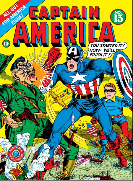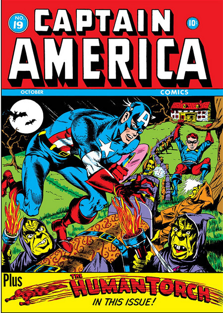 Раз так, можно перейти к комиксу Captain America Comics #13, который начинается с истории «Лига Единорога». В Америке объявляется китайская террористическая организация «Лига Единорога». Её глава, Король-Единорог Зан, намерен убить прибывших в гости в США китайских принца и принцессу, обвинить в убийстве американцев, дестабилизировать отношения между США и Китаем, вынудить Китай отказаться от американского влияния и вообще «вернуть всё взад» и сделать Китай великим опять. Капитан Америка и Бакки предотвращают покушение, ловят Зана, снимают с него маску, а он оказывается и вовсе не китайцем, а очень даже американцем, владельцем железной дороги, и его настоящий план – ослабить Китай, убив принца и принцессу, и захватить в нём власть. История под названием «Ужасный Маяк» могла бы быть криповой – но мистики в ней и вовсе нет, просто несколько бандитов используют маяк, чтобы сбивать с курса, сажать на мель и грабить корабли, а чтобы их не спалили, распространяют городскую легенду о том, что в маяке живут призраки. Капитан Америка и Бакки доказывают – чудовищ нет на Земле.