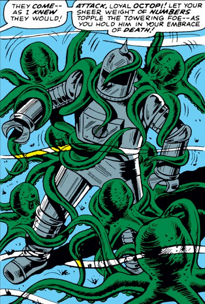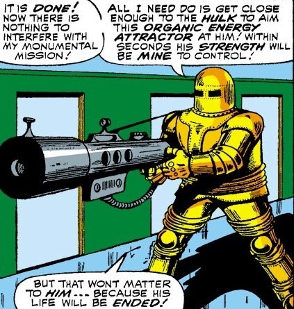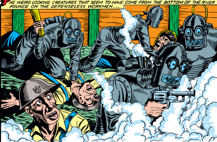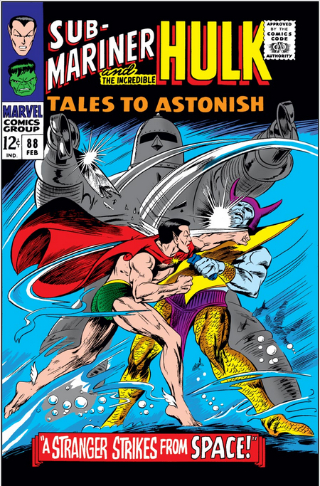 Новые потрясающие истории ждут в комиксе Tales to Astonish #88. Только было разобрались с Крэнгом, как Аттума объявляется со своей армией глубоководных варваров. Впрочем, его Нэмор в бою 1 на 1 нагибает довольно быстро, посрамляет и обращает в бегство. Сбежав в своё логово, Аттума бомбит, мол, Атлантида должна принадлежать ему по праву завоевателя, но пока что ему достаются только зипдюли. Впрочем, Аттуму ждёт неожиданный подарок. Мимо Земли по направлению к 36-й туманности (ох уж эта ретро-фантастика с числовыми наименованиями космических объектов) летит звездолёт, и случайно роняет на Землю мощного робота. Тот плюхается в океан, и этим тут же решает воспользоваться Аттума. Опробовав на роботе всё своё оружие и придя к выводу, что робот неуязвим, Аттума приказывает подчинённым робота обездвижить, после чего программирует его для подчинения вербальным командам, и приказывает отправиться к Атлантиде и убить Нэмора!