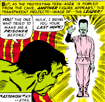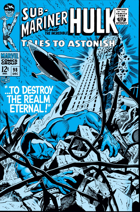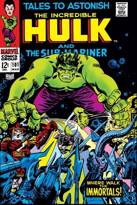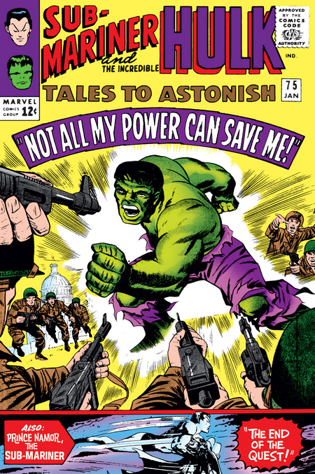 В юбилейный выпуск направляемся, Tales to Astonish #100 за февраль 1968 года. Всё ещё планируя поставить мир поверхности раком и понимая, что от подданных добра искать не стоит, Нэмор решает заручиться поддержкой Халка. Но очень невовремя Нэмора решает прищучить Кукловод, и для этого сооружает из радиоактивной глины фигурку Халка, тем самым взяв зелёного великана под контроль. А военные разгребают завалы базы Живой Молнии и призывают Рика Джонса – авось, если Халк жив, парень сможет его как-то угомонить. Они же не в курсе, что Халка взял под контроль Кукловод. Халк вырывается из-под завалов, раскидывает военных и Рика и упрыгивает бить Нэмора. Тут уж даже Рик Джонс приходит к выводу: Халк стал совсем неконтролируемой угрозой, это тупо безмозглое чудище.