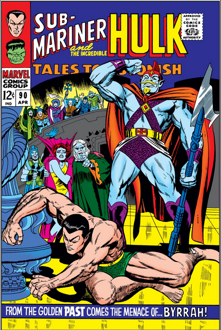 Сегодня лучащиеся гамма-радиацией приключения начнутся с комикса Tales to Astonish #94 за август 1967 года, с историями от Роя Томаса (Нэмор) и Стэна Ли (Халк) и рисунками от Билла Эверетта и Мари Северин. И гачимучи-обложкой, на которой Нэмор понимает, что босс качалки тут не он. В прошлом выпуске Нэмор сразился с тварью под названием “Оно” и начал думать, что Оно – робот, посланный людьми. Сейчас он созывает военный совет, планируя напасть на поверхность. Против только Дорма, но это 1960-е, женщин нужно любить, а не слушать. Между тем, альянса с Атлантидой просит Драгорр, правитель небольшого острова. Нэмор отправляется туда, чтобы лично набить Драгорру морду – как посмел житель поверхности, по определению трус, предатель и говнюк, предложить союз! И-и-и на тострове Нэмор попадает в ловушку, Драгорр берёт его в плен и с помощью особого силового поля контролирует его действия и заставляет Нэмора разгонять митинги да бить оппозиционеров. Но Нэмору на помощь приходит Дорма, приняв зелье дыхания воздухом. В сражении 1 на 1 оказывается, что Драгорр – робот, и его контролировал гном, прикидывавшийся его приспешником. Разломав робота, Нэмор возвращается к делам Атлантиды.