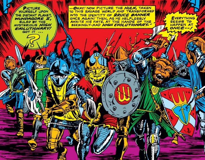 А Халк воландается бесцельно и его замечают охотники, работающие на Верховного Эволюционера. Эволюционер в последнее время пыхтит над решением проблемы озверения – созданные им разумные зверолюди дичают. Он приказывает охотникам поймать Халка – может, изучение его фонящего тела даст представление о том, как исправить проблему? Ну да, “Поймайте Халка”, задача – нефиг делать. И да, охотники его ловят – пока что газ для Халка является непреодолимым препятствием, а Эволюционер выдал охотникам газовые ружья. Халка погружают на корабль, задают курс на планету Вандагор-2, где сейчас живёт Эволюционер. Присматривать за Халком остаётся один из неозверевших зверолюдей, Сэр Овен. И-и-и Халк просыпается и благородного барана нокаутирует. Остаётся проблема: Халк летит в неуправляемом звездолёте в пердя вселенной (Халк и не против, он давно хотел свалить со сраной Земляшки куда-нибудь, где его не будут ненавидеть). А до Планеты Халка ещё далеко...