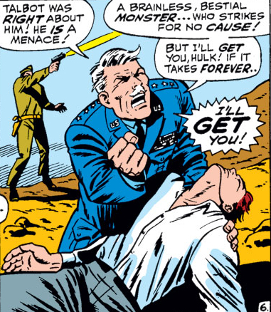 А генерал Росс в панике требует, чтобы Халка привели в чувство, потому что только у него есть хоть какой-то шанс победить Мерзость. Чем привести Халка в чувство? Правильно, облучением гамма-радиацией. Что не убивает, делает сильней! Что убивает – тоже делает сильней, в мире комиксов вообще всё делает сильней. Проморгавшись, Халк собирается свалить, потому что Росс ему вообще неинтересен и всё, что Росс говорит, по определению брехня мелких людишек. Только Рику удаётся убедить Халка остановиться, и то, только упомянув Бетти. Халк после такого аж в Брюса Бэннера превращается. Брюс же быстренько создаёт прибор, излучение которого будет для Мерзости как лампочка для мотылька. Мерзость идёт на “зов” прибора, а Брюс превращается в Халка и нападает. И даже начинает брать верх...тут-то и вмешивается Странник. “Не, Халк это явно не моё, вот Мерзость збс” – и забирает Мерзость к себе в космос. Битва окончена, все теперь думают, что делать с Халком. А Халк такой “Да отвалите от меня уже!” – и упрыгивает в неизвестном направлении.