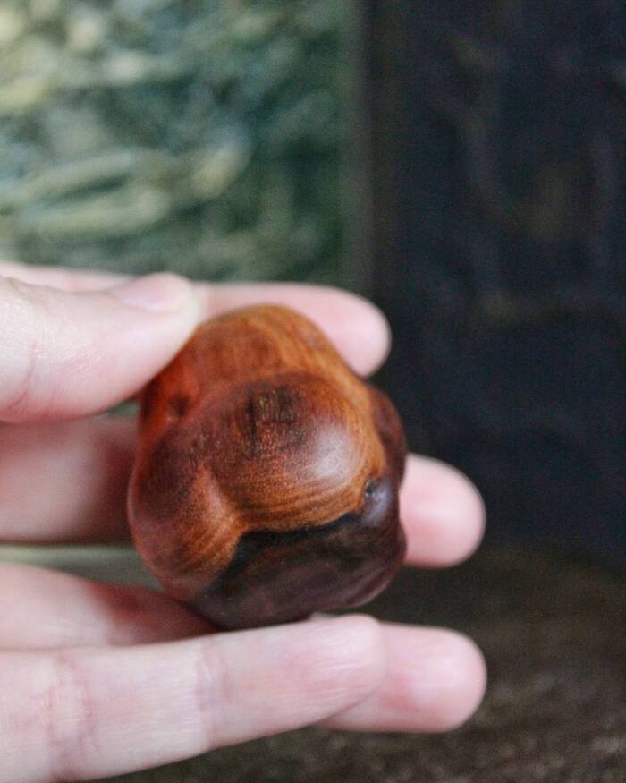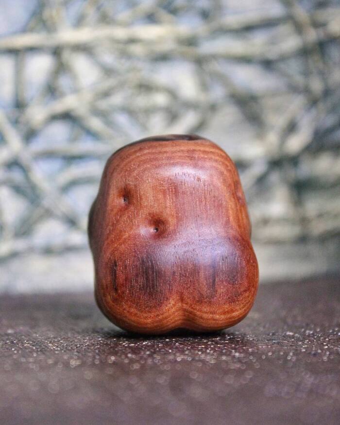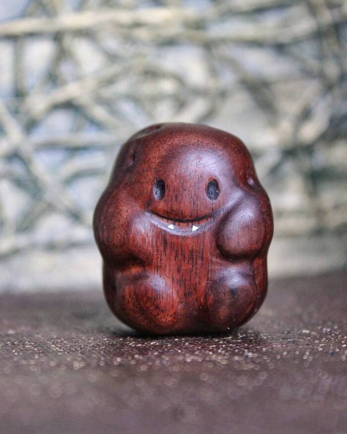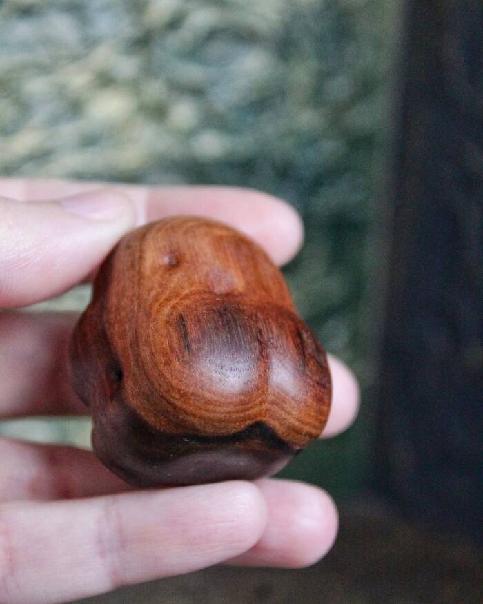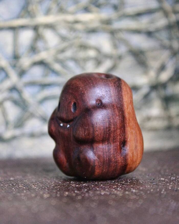 Размер этой крошки-картошки чуть меньше 4 см. Вырезана из ореха. И вы только посмотрите, как удачно рисунок выделяет картофельную жопку 🍑😍