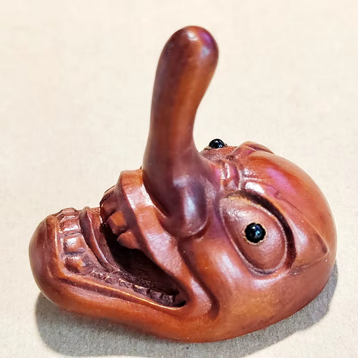 Миниатюрная голова дедушки в стиле фигурок Нэцкэ. Имеются отверстия для шнурка. Длина около 4 см. Ссылка на неё