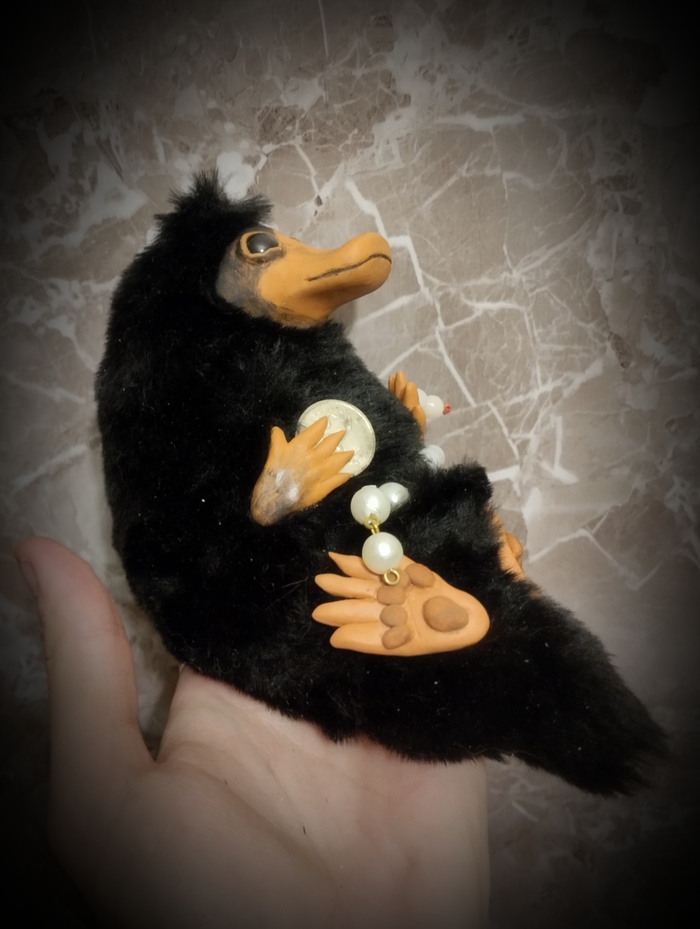 Загребущий зверёк (Нюхлер). В моём исполнении это снова брелочек, но так же связала для него монетки, чтоб ему не скучно было)))