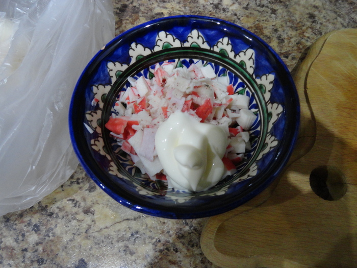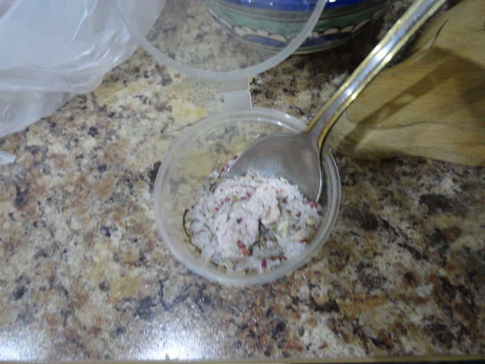 7. Порежьте готовую курочку, на одну шаурму уходит половинка куcочка. cверху полейте cоуcом немного.