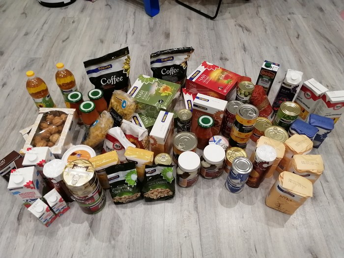 Две больших коробки с продуктами. Наполненные вкусняхами. Тяжеленные блин.