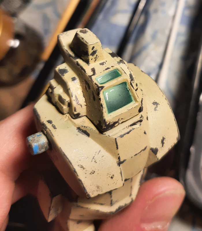 После высыхания краски, смачивал в воде зубную щётку и грубо шоркал по всей поверхности белого цвета. Некоторые грани немного соскрёб лезвием. Метод трудоёмкий, но позволяет создать эффект облетевшей краски в логичных местах.