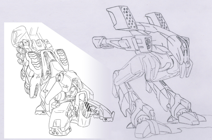 Я взял один из своих старых рисунков (2000г.) и на дополнительных карандашных набросках усложнил несколько элементов, и добавил технических деталей.