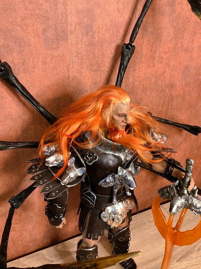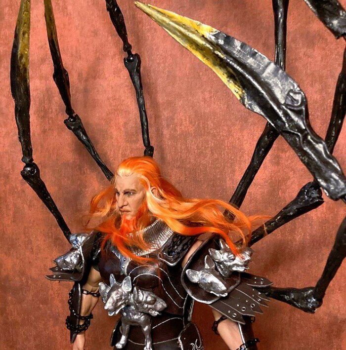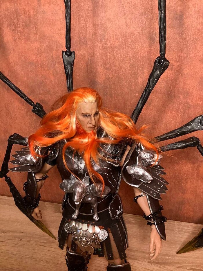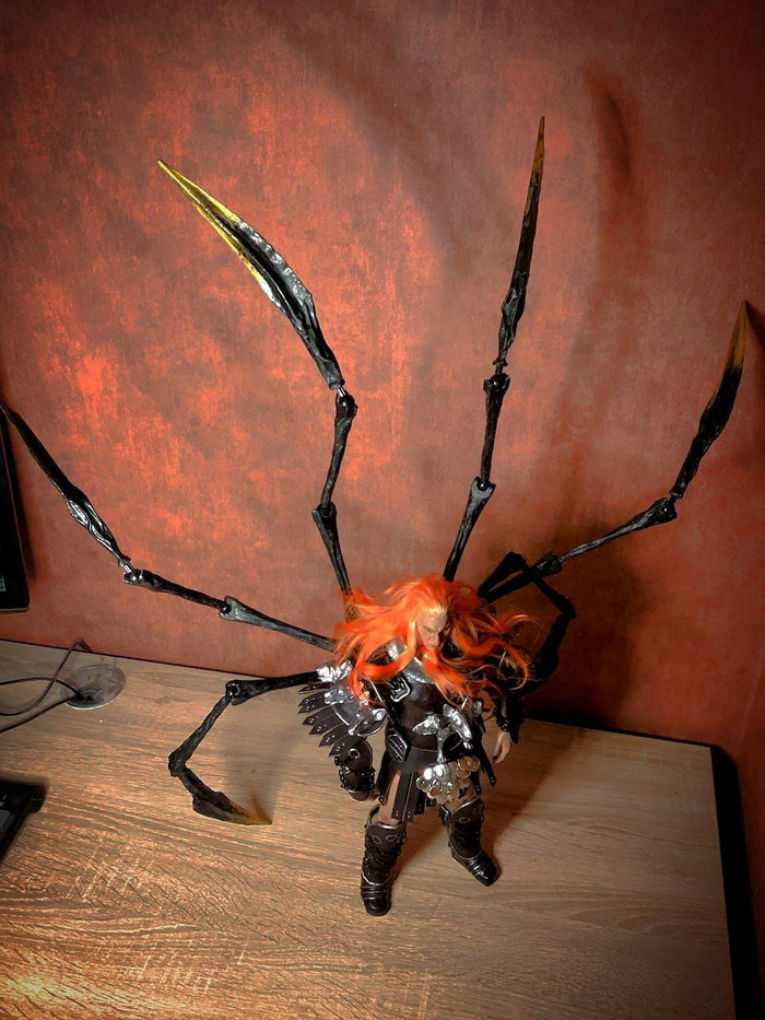 Меч и броня в двух вариантах (обычная и паучья) воспроизведены вручную на основе концептов и скринов gow1 и gow3. Броня полностью съемная (однажды я сделаю ему еще один набор одежды из ассеншена...). Аря стоит без подставки, шевелит пауколапками, гладится по голове, большой, кросивый, вах. 🤌 (Ей богу, начинаешь чувствовать время, когда понимаешь, что на скринах он теперь выглядит моложе, чем сам Кратос..)